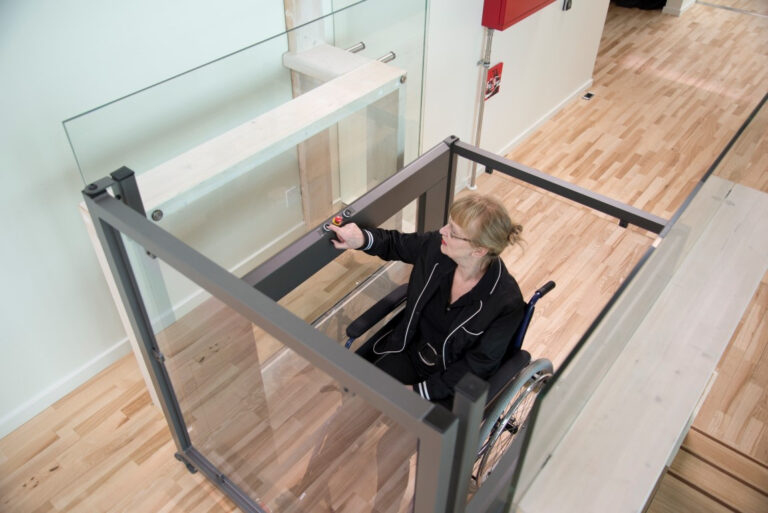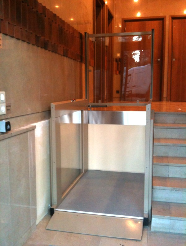 El elevador de corto recorrido INVICTUS cuenta con 4 soportes en cada esquina y fijación pared, 4 motores perfectamente sincronizados y un movimiento estable, seguro y confortable. Pídanos presupuesto sin compromiso para la instalación del elevador de corto recorrido INVICTUS.