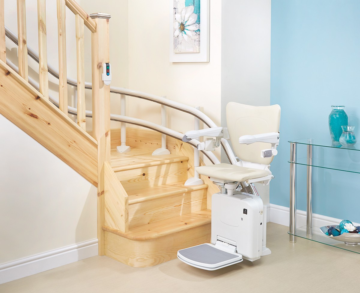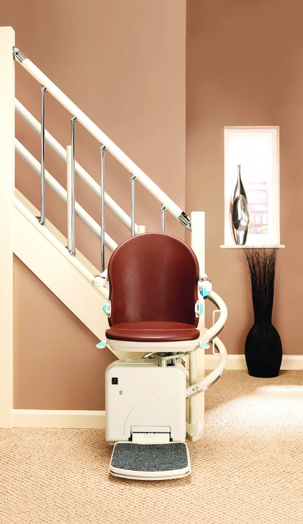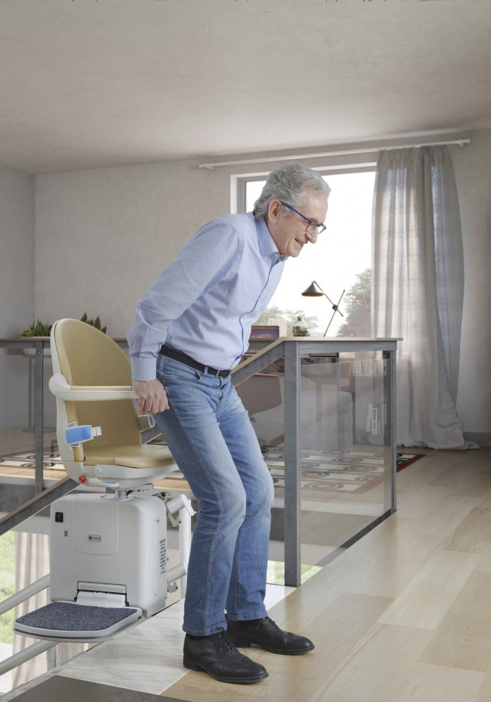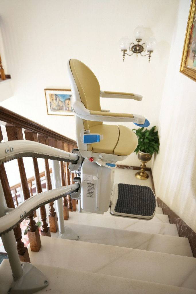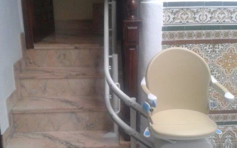 La silla salvaescaleras de la gama SOCIUS es óptima para tramos curvos de escalera y cuenta con sistema de tracción mediante piñón y cremallera, moqueta antideslizante en el reposapiés y está indicada para instalaciones tanto en interior como en exterior. Pídanos presupuesto sin compromiso para la instalación de la silla sube escaleras SOCIUS.